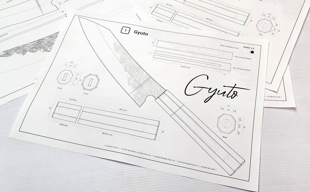 Are you ready to embark on a culinary adventure like no other? Look no further than the Gyuto Chef's Knife Templates, meticulously designed by the renowned American Bladesmith Society (ABS) Master Smith, Neels van den Berg. This digital collection is exclusively available at Black Dragon Forge, poised to set your culinary creativity ablaze.