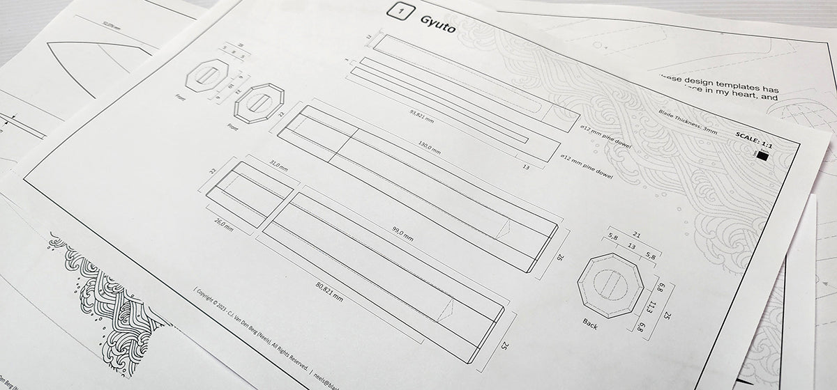 This package includes the following files:- 1 x PDF - Gyuto Chef's Knife Template Files