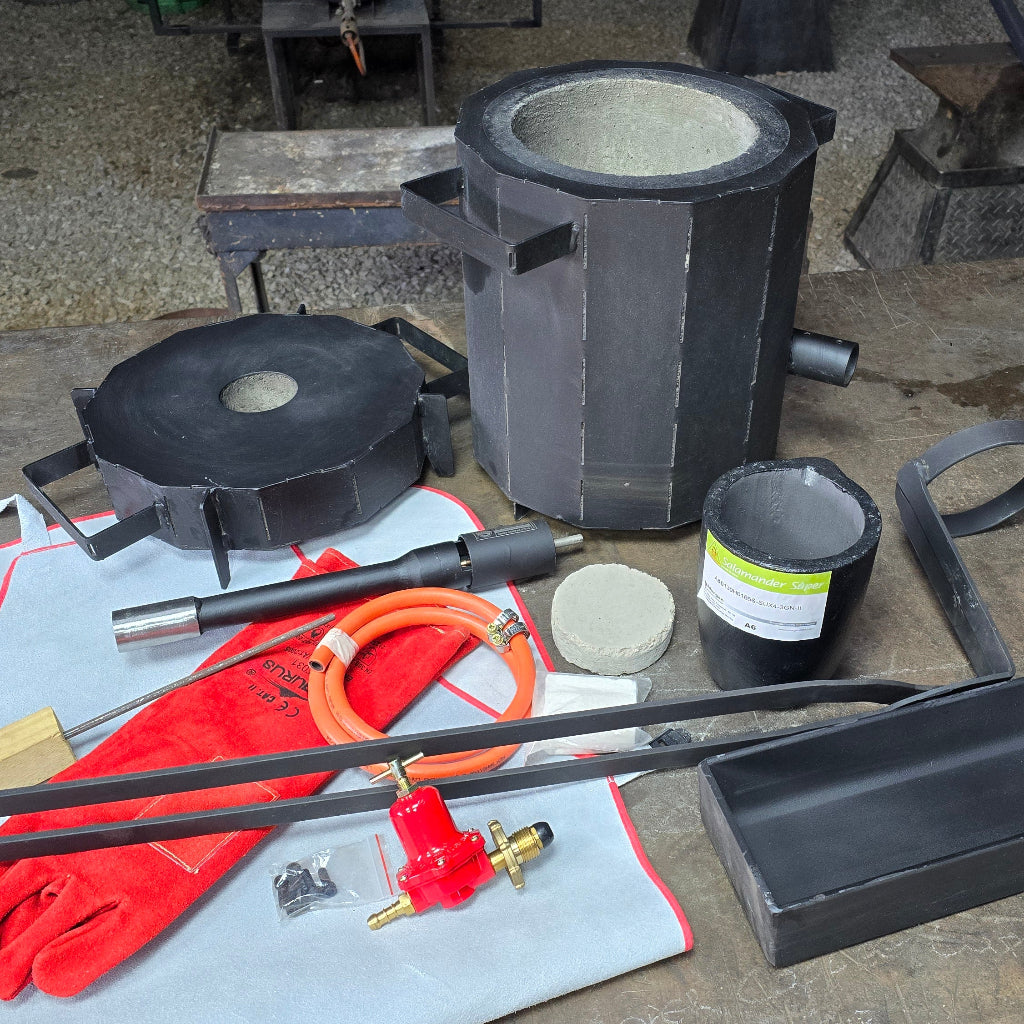 LP Gas cylinders. The kit includes an A6 crucible; larger crucibles and extra molds/tongs can be purchased separately.